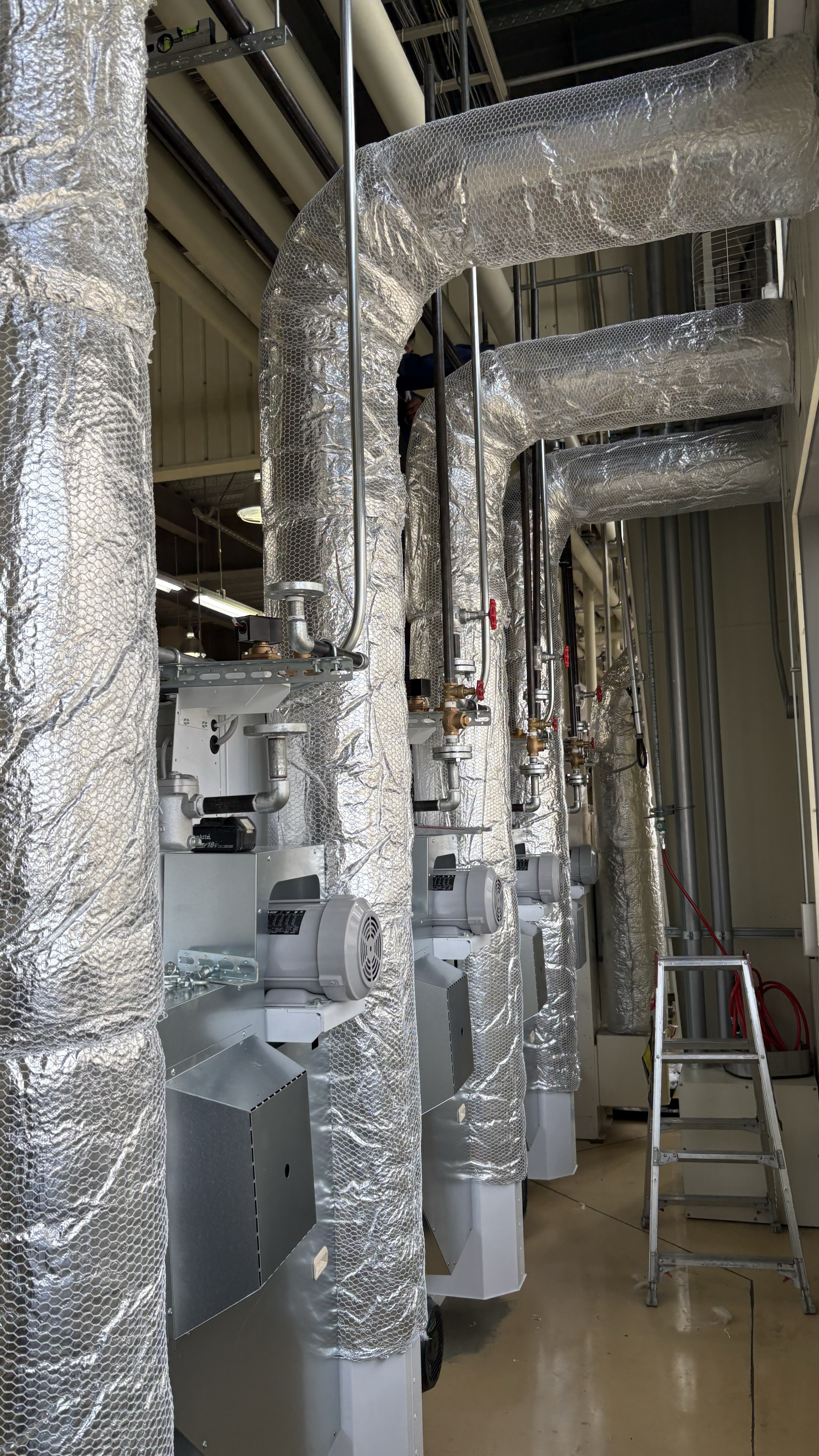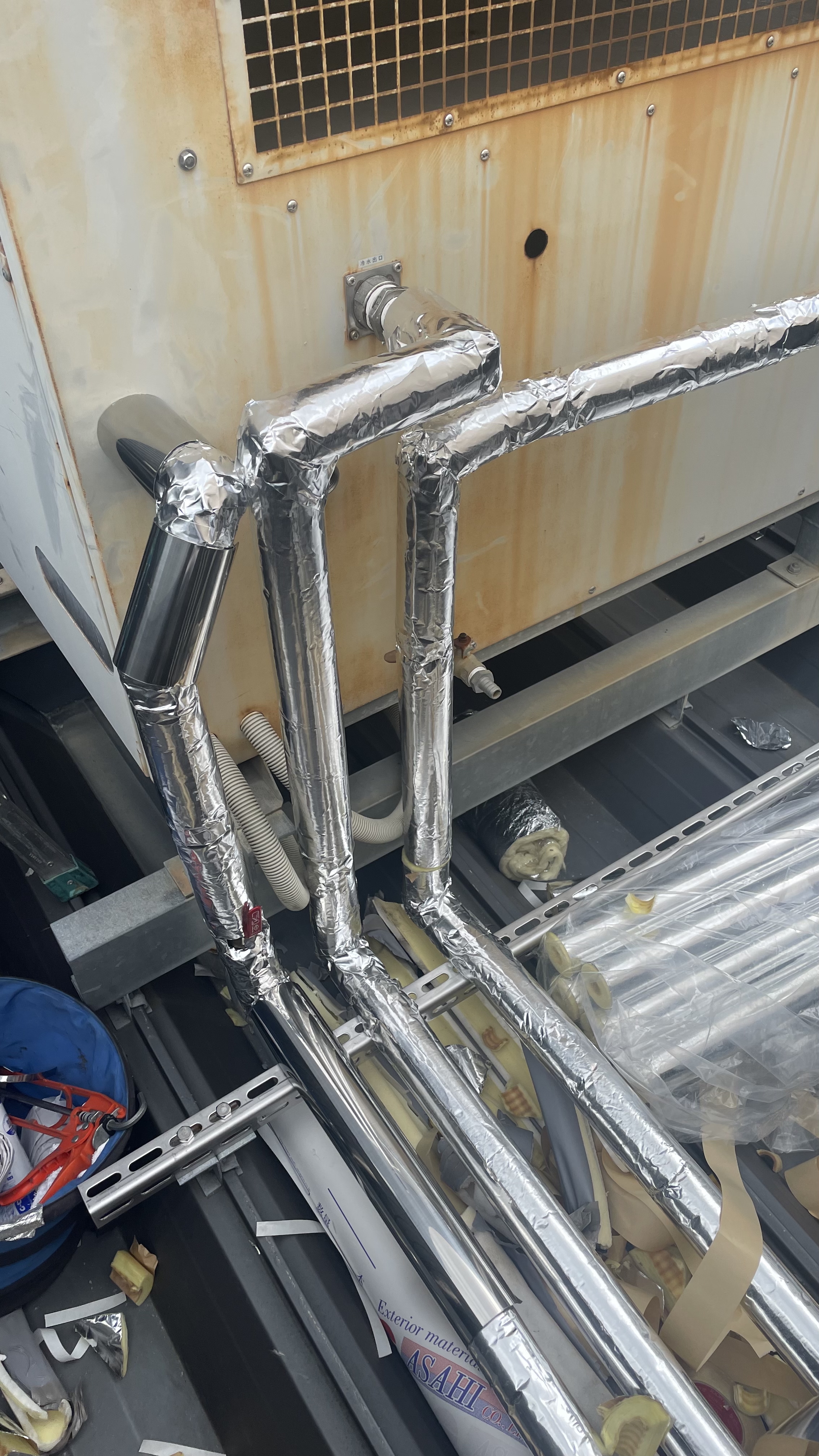 冷水管・蒸気管・ブライン管などの配管やダクト各種タンクの断熱板金施工を得意とし、商業施設やテナント、公共施設、医療機関、各種工場など幅広い現場に対応しています。